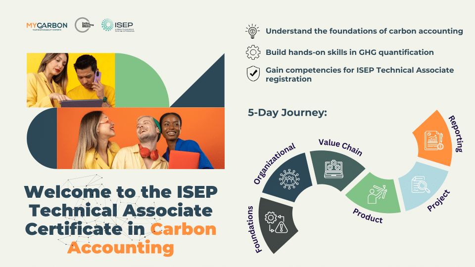 Delivered by MyCarbon in partnership with the Carbon Accounting Alliance (CAA), this is the inaugural course granting eligibility for the Institute of Sustainability and Environmental Professionals' (ISEP) Register of Carbon Accountants and Auditors. Successful completion of this program awards you Technical Associate-level certification.